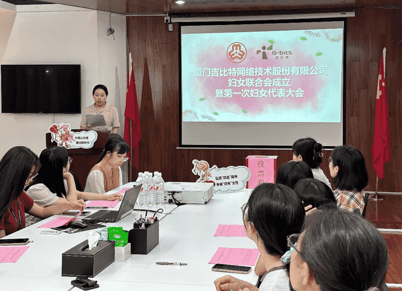 8月12日,,在廈門市婦聯(lián)、、、思明區(qū)婦聯(lián)的指導(dǎo)下,,,廈門一競(jìng)技網(wǎng)絡(luò)技術(shù)股份有限公司婦女聯(lián)合會(huì)成立暨第一次婦女代表大會(huì)順利召開。。。。會(huì)議選舉產(chǎn)生了第一屆執(zhí)行委員會(huì)委員7名,,其中主席1名,,,,副主席2名。。