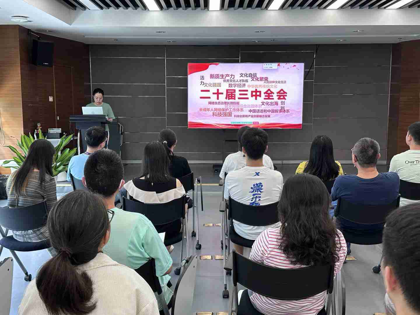 與會人員深入學習《決定》內容。。。。黨的二十屆三中全會提出必須增強文化自信,,,發展社會主義先進文化,,弘揚革命文化,,,傳承中華優秀傳統文化,,加快適應信息技術迅猛發展新形勢,,構建更有效力的國際傳播體系,,,,這為廣大文化產業工作者指明了奮斗方向。。。。